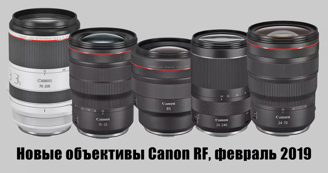 Компания Canon представит пять моделей объективов для камер EOS R: RF 15 – 35/2.8, RF 24 – 70/2.8, RF 70-200/2.8, RF 24 – 240/4.0 – 6.3, RF 85/1.2